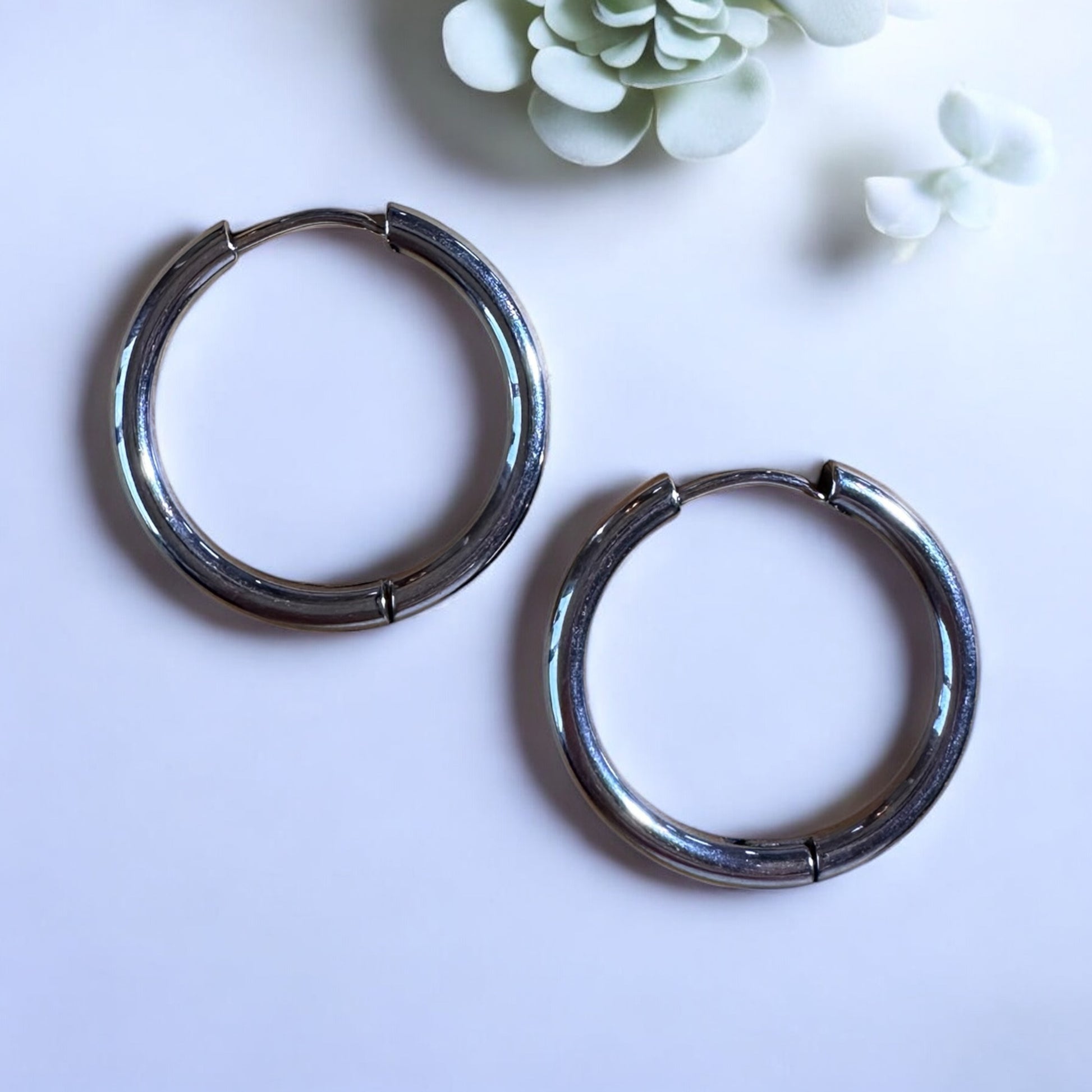 Diese eleganten silbernen Creolen passen zu jedem Outfit.