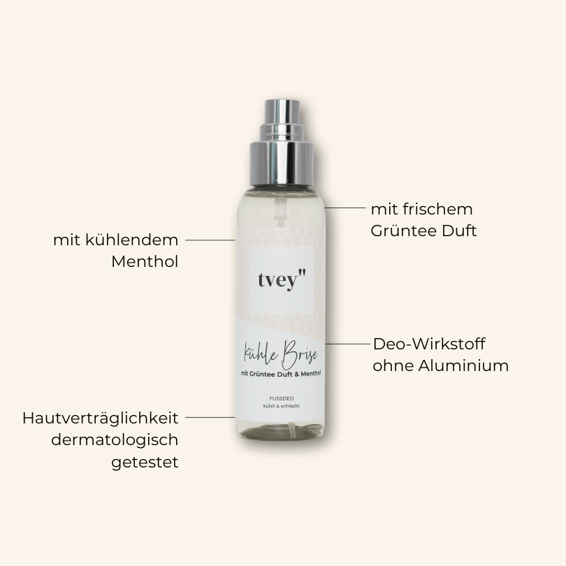 Wie eine kühle Brise weht das tvey” Fussdeo über deine Füße. Gönne deinen Füßen eine einmalige Erfrischung.