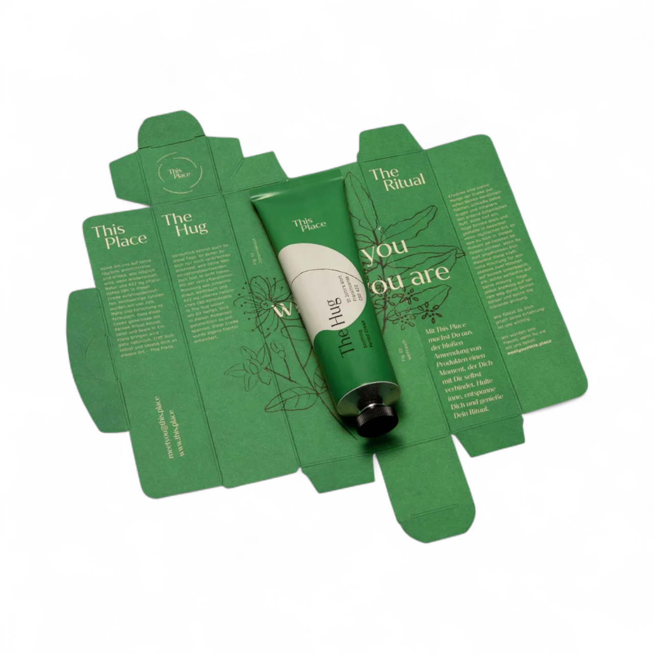 Mit der Periodencreme The Hug können Sie sich vor und während der Menstruation auf eine wohltuende Formulierung verlassen. Innovativ-botanische Wirkstoffe die ganzheitlich gut tun. The Hug vermittelt das Gefühl einer stärkenden Umarmung – und das als Anwendung, die unkompliziert, gezielt und überall möglich ist.