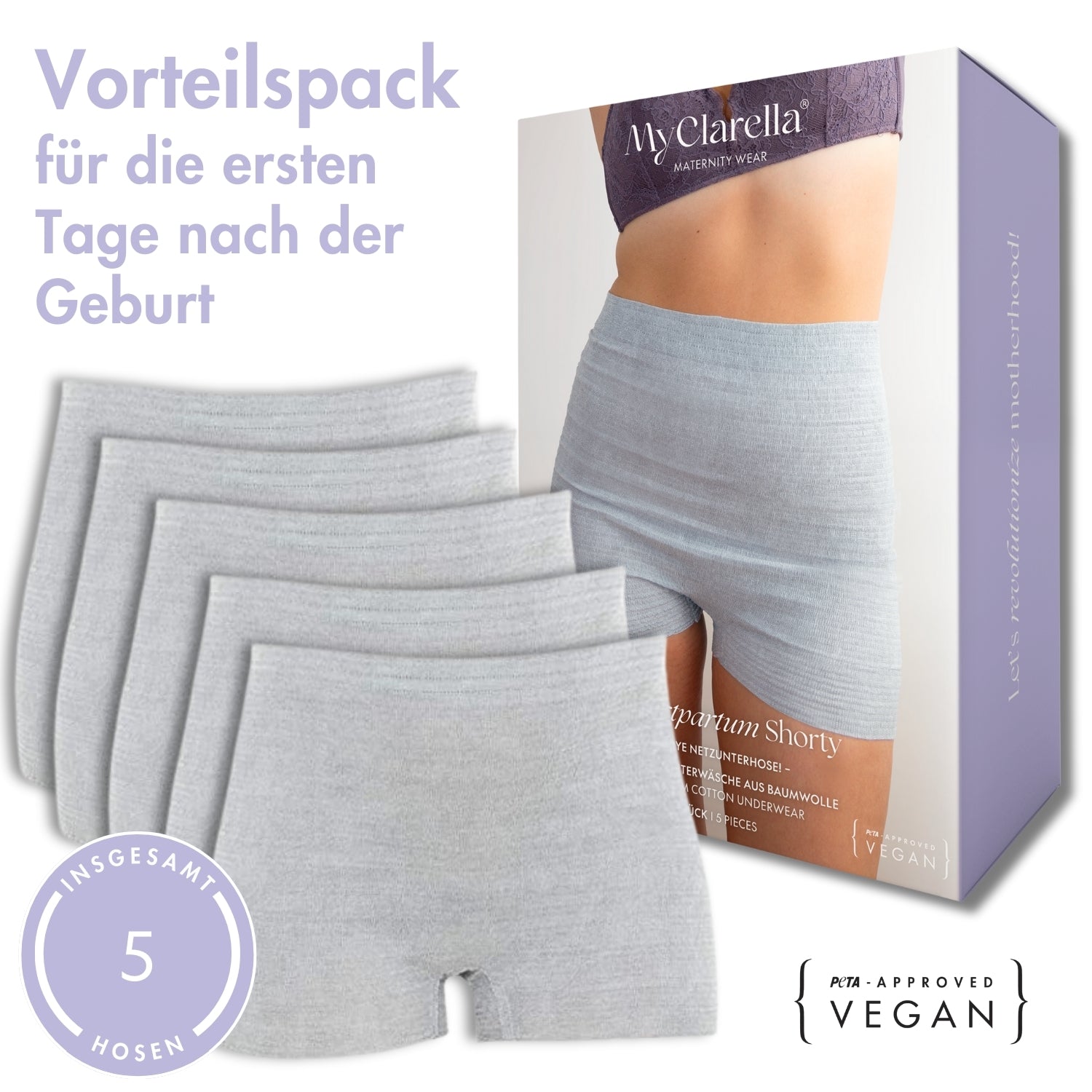 5x The Postpartum Shorty | 95% Baumwolle, 3% Spandex, 2% Zellstoff