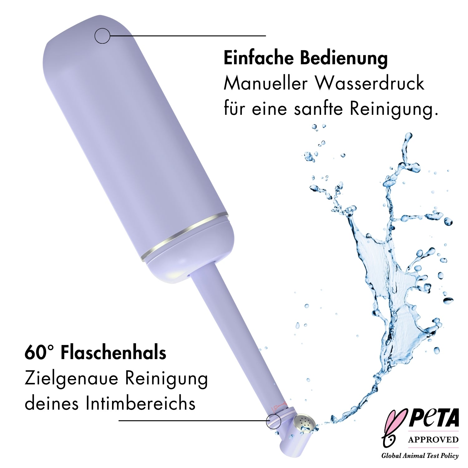 Unser besonderes nach unten gewandtes Design mit 60° geneigtem Flaschenhals ermöglicht es dir, zielgenau deinen Intimbereich zu reinigen, wo es eben gerade nötig ist. So wie es deine Vagina verdient hat.